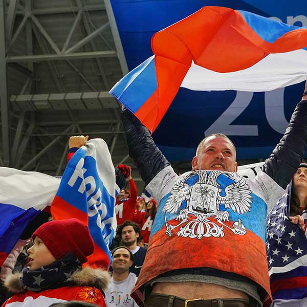 The loud and visible Russians in the stands ensured that the national emblems banned from the competitors were were not absent from the games.